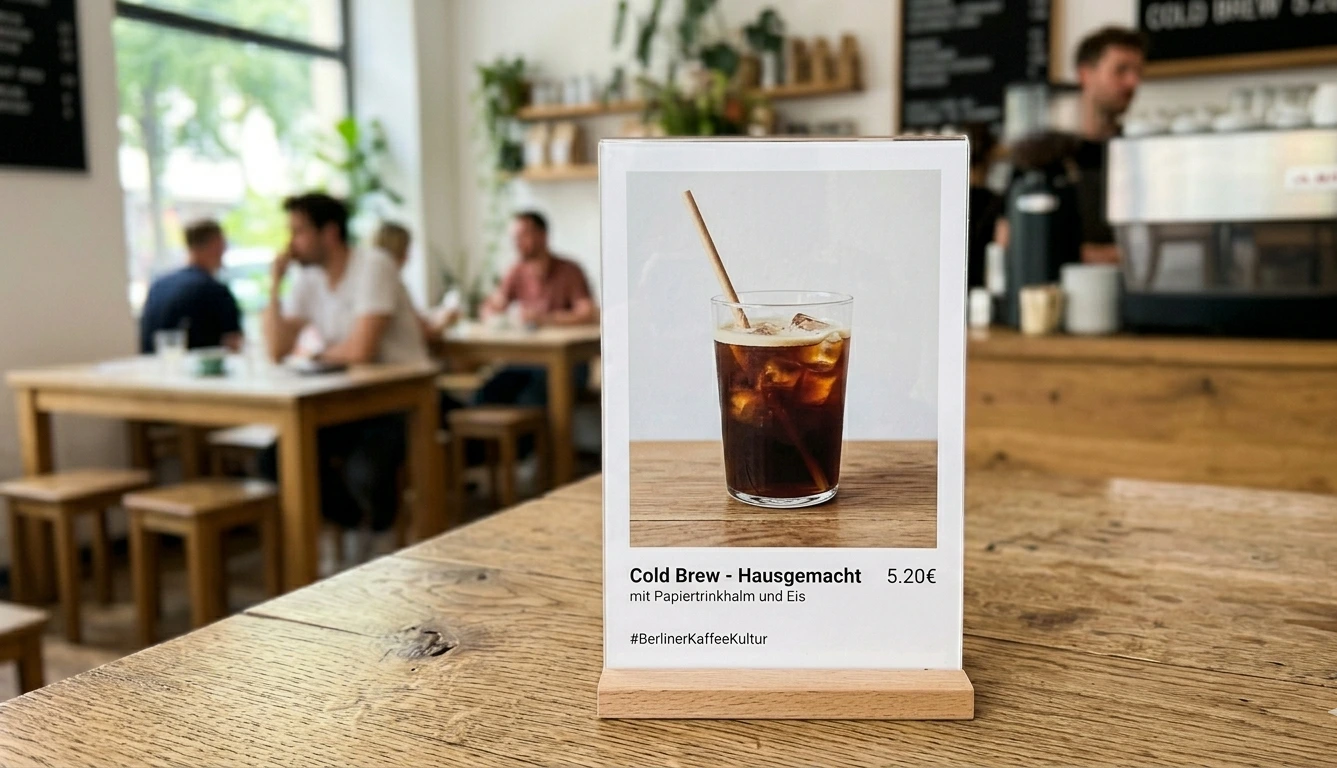 POS Material ist das am meisten unterschätzte Verkaufsinstrument im Café. Es arbeitet still, kostet wenig und ist genau dort, wo der Gast seine Entscheidung trifft. Ein guter Aufsteller mit einem klaren Bild, einer Botschaft und der richtigen Platzierung kann den Absatz einzelner Produkte messbar steigern.
