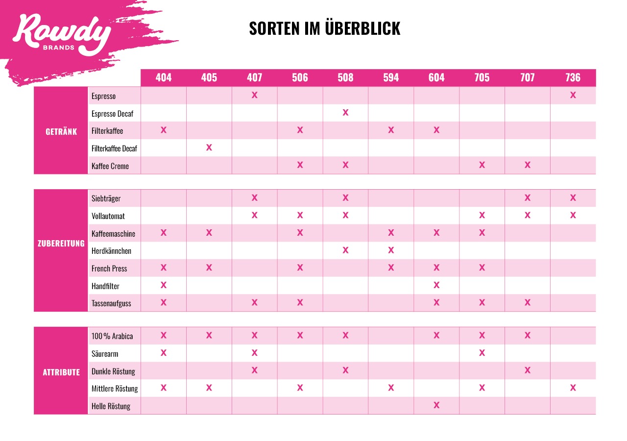 Kaffee ist das Erste, was morgens funktionieren muss – bevor du es tust. Rowdy röstet für Gastronomen, Baristas und alle, die beim Kaffee keine Kompromisse machen. Vom kraftvollen Espresso über klassische Frühstückskaffees bis zu Single-Origin-Raritäten und entkoffeinierten Varianten für jeden Einsatz die passende Röstung. Und für die Gastronomie: Großpackungen, gleichbleibende Qualität, kein Drama.